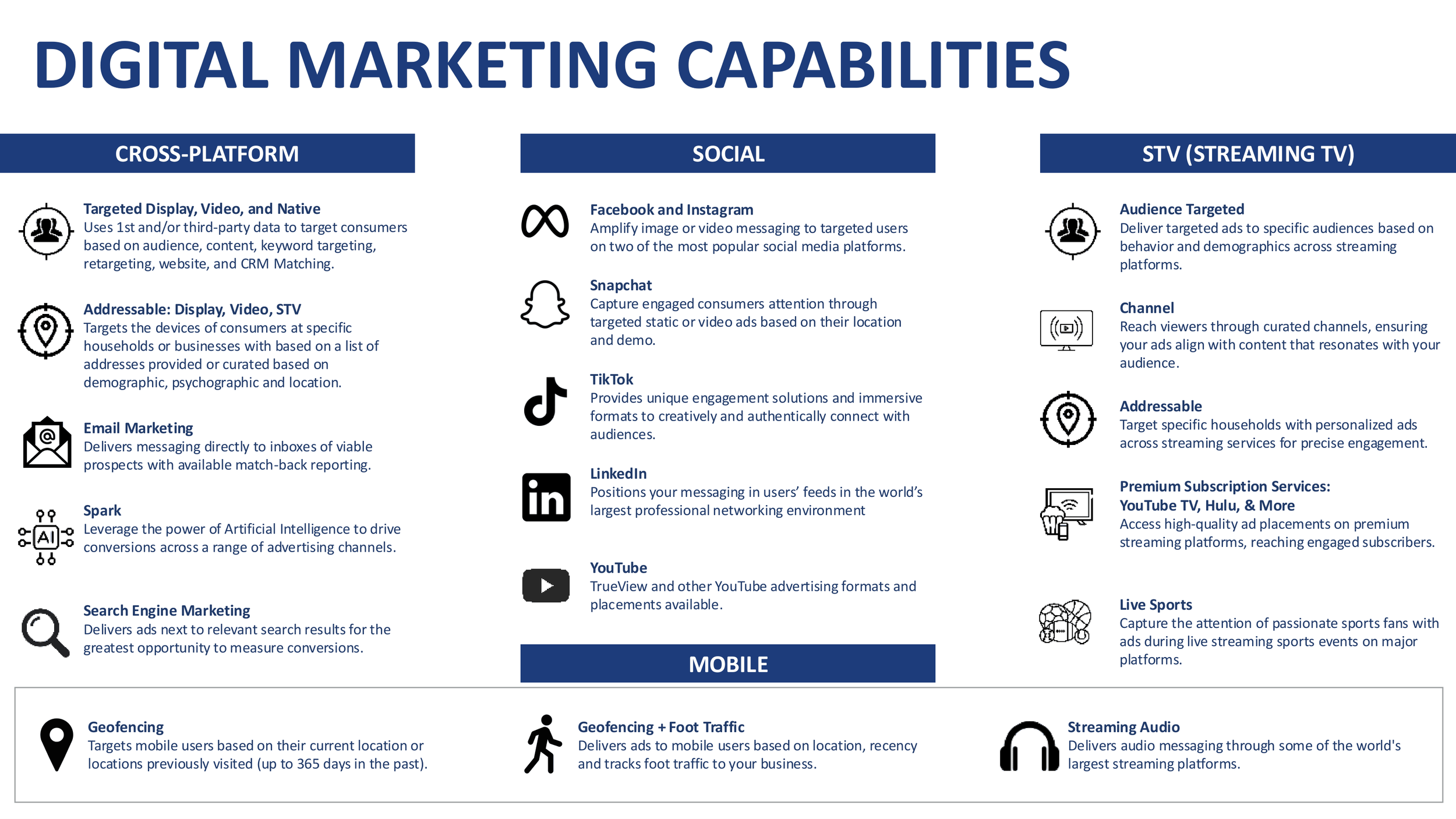 With direct access to all the major DSP's, this allows us to seamlessly optimize campaigns across platforms without limitation.